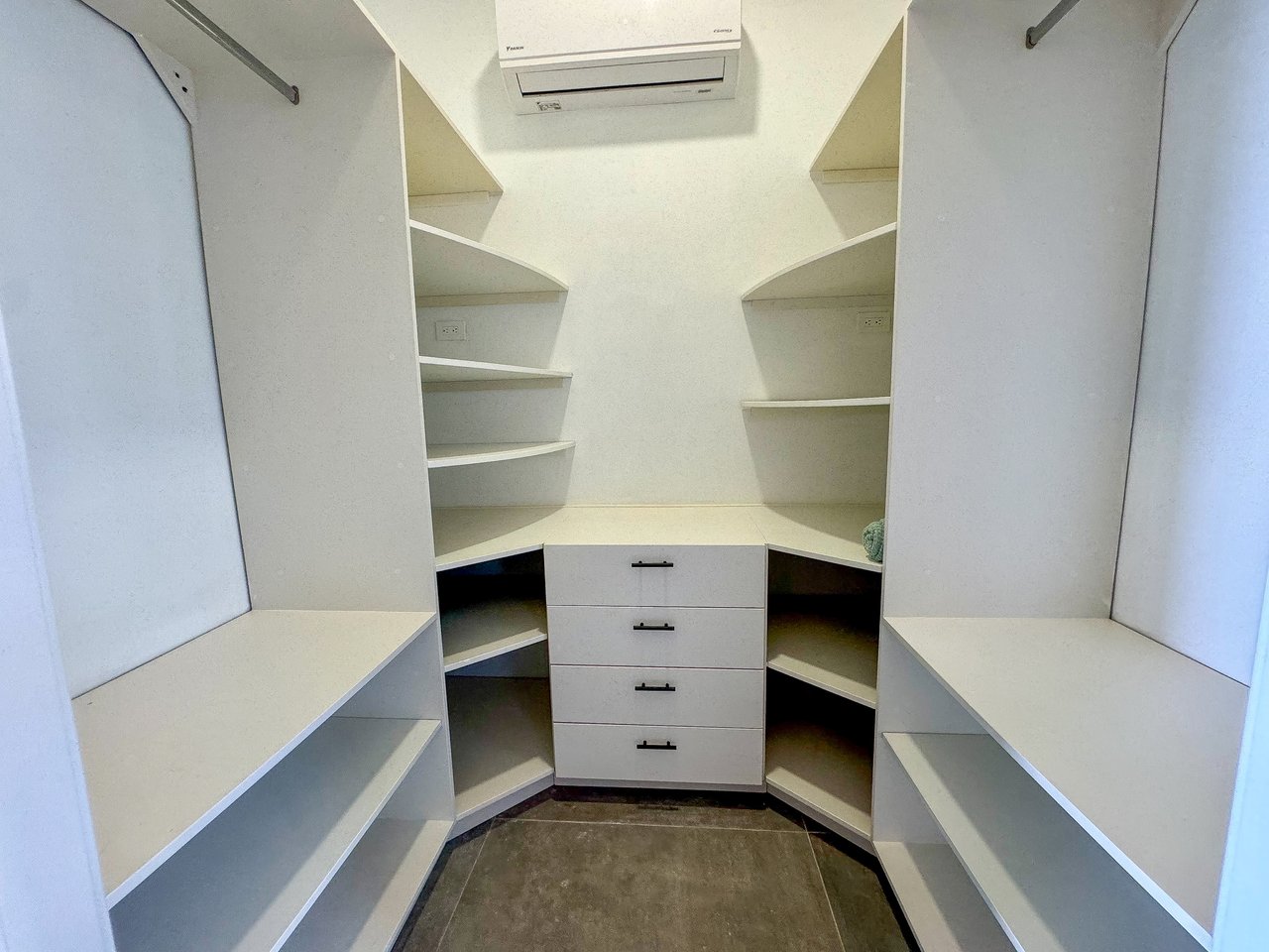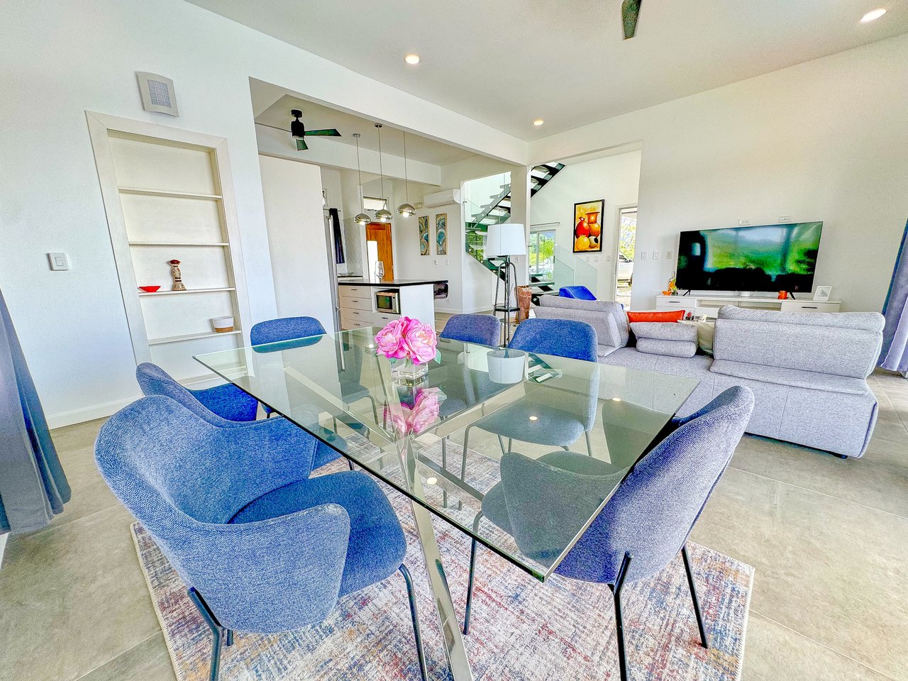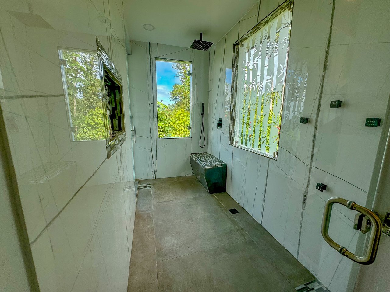Each of the three master bedrooms is a sanctuary of its own with stunning jungle and ocean views . The upper master bedroom is accessed via a beautiful glass staircase and has a large walk-in closet, ensuite bathroom and wrap-around floor-to-ceiling windows that open up to a private balcony. This is an incredible place to enjoy your morning coffee as you watch the sunrise, or a sunset appointment with a glass of wine or a mojito in hand. For star gazers, this is the perfect spot to view the Milky Way!
