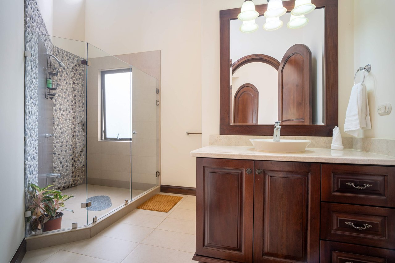 THE MAIN HOUSE The main house is an architectural masterpiece of quality design and a true ‘castle in the jungle’ (just look at the aerial photos)! Made of solid concrete construction and incorporating high vaulted ceilings, the single level luxury home holds 4 private bedrooms - each with king canopy bed and en-suite full bathroom plus 1 shared bath and a large central kitchen / dining / lounge area which opens up into the covered patio, attached ranchito and million-dollar views. And here is where you find the refreshing infinity pool, jacuzzi, BBQ, and outdoor dining and lounge areas. The house takes full advantage of its magnificent location, with every room having a unique spectacular view. The waterfall can be seen and heard from the house. Each room is air-conditioned and is provided with outdoor access so that the splendid natural views are just a few steps away. An extra-large 2.5-car drive-through garage contains a large bodega, so storage will never be a problem. The home is a successful 5-star Airbnb property - its excellent income-generating history can be provided upon completion of an NDA.